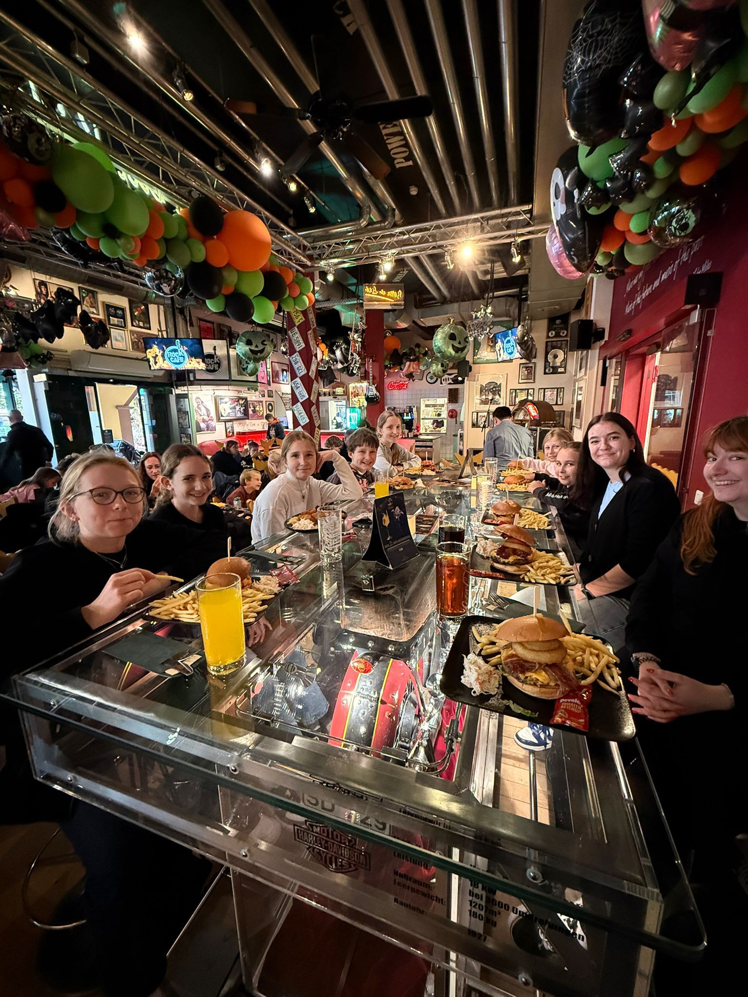 Als erstes stiegen wir in einige Achterbahnen ein: Blue Fire, Silver Star sowie die Rodelbahn standen auf dem Programm. Die Fahrten waren aufregend und sorgten für gute Stimmung unter allen. Zum Mittagessen kehrten wir in das Restaurant FoodLoop ein, wo das Essen per Achterbahnschienen zu den Tischen “herunterschwebte”. Zusätzlich gab es im Rock Café leckere Burger als Alternative.