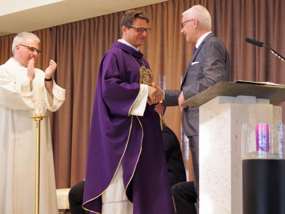 Bischofsvikar Hanspeter Wasmer setzt Barbara Weinbuch als Pastoralraumleiterin ein und Pater Jaroslaw als Leitender Priester