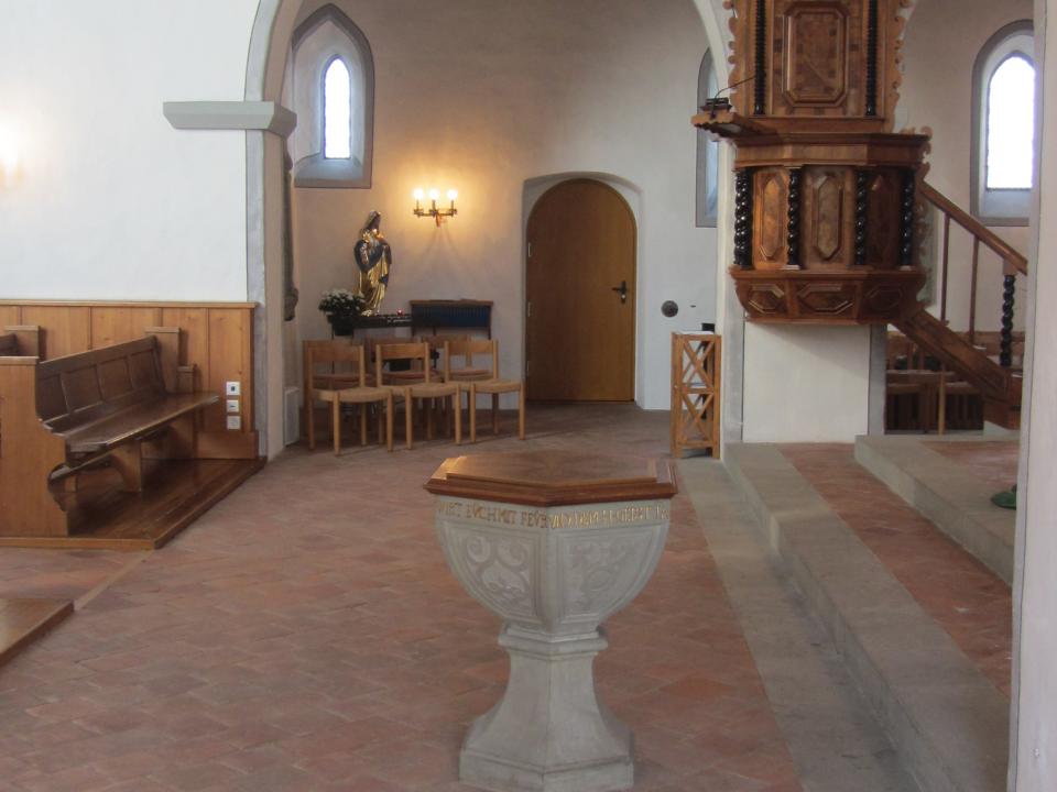 Versteckt hinter dem Gemeindezentrum und äusserlich eher unscheinbar, wird sie oft kaum wahrgenommen. Ihren Schatz verbirgt sie im Inneren. Seit der umfassenden Restaurierung im Jahre 1997 glänzt sie wieder in alter Pracht und lädt zur stillen Einkehr ein.